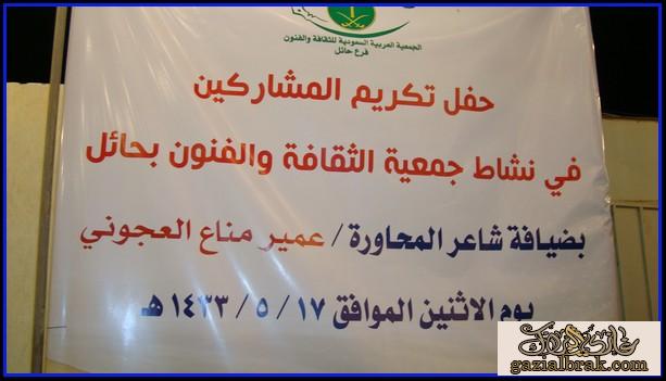 رد: حفل تكريم المشاركين في نشاط جمعية الثقافه والفنون بحائل بضيافة الشاعر عمير العجون بالتوفيق ان شاء الله  للجميع |