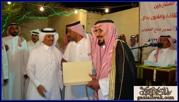 رد: حفل تكريم المشاركين في نشاط جمعية الثقافه والفنون بحائل بضيافة الشاعر عمير العجون بيض الله وجهك ياعوض البراك مهي غريبه منك |