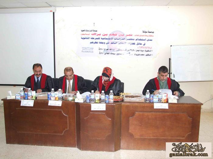 بســــم الله الرحمن الرحيم أخواني الأعزاء وزوار موقع الشاعر غازي البراك موقع الجميع السلام عليكم ورحمه الله وبركاته اما بعد..... لقد حصل الشيخ : نمـر بن فهد بن عبيد بن براك على درجه الماجستير في قسم الناهج من كليه العلوم التربوية بجامعة مؤته في المملكة الاردنيه الهاشمية بعد اجتيازه مناقشة الماجستير الموسومه بـــــ( مدى استخدام معلمي الدراسات الأجتماعية للمرحلة الثانوية في حائل لمهارات التفكير الناقد من وجهة نضرهم ـ دراسة ميدانية على منطقة حائل. ( تحت إشراف وأعضاء لجنة المناقشه وهم كل من: 1ـ الدكتـــــــــور:محمد غزيوات . عضواً 2ـ الدكتــــــــــور: عبدالله الجراح .عضواً 3ـ الدكتــــــــــــور: يوسف المجالي.عضواً 4 ـ الدكتــــــــــــوره: دينــا الجمـــل. مشرفه ورئيسه وقد تمت إجازة الرساله بعد المداولات والنقاش بتقدير ممتاز من اعضاء اللجنة علماً بأن الشيخ : نمر بن براك يعتبر من الطلاب المتميزيـــــن والمبدعين في قسم التربية حيث حصل على افضل طالب لما له من جهود علمية في قسم التربية متمنين له حياه علمية مميزه. كمــــــــــا أهني باسمي ونيابه عن اداره موقع الجميع والده الشيـــخ/ فهد بن عبيد بن علوش بن براك على حصول إبنه على درجه الماجستير وعقبال الدكتوراة وحياه سعيده . واليكم الصوووور نمر بن فهد بن براك اساتذه المناقشة http://www.sot3bs.com/do.php?imgf=so...3215396688.jpg الاستاذ /حجاج بن فهد بن براك والاستاذ/تركي بن عبيدالله بن براك احدا منسوبي شركة بن لادن الاستاذ/عبدالفهيم الرشيدي والاستاذ/ براك بن فهد بن براك والاستاذ/بشير عبيدالله بن براك لحضة اعلان النتيجه http://www.sot3bs.com/do.php?imgf=so...3215506053.jpg يسار الصوره /الدكتور ندى بن فهد بن عبيد بن براك http://www.sot3bs.com/do.php?imgf=so...3215399962.jpg الدكتور/عيد عايش الرشيدي والدكتور:نداء فهد بن براك والاستاذ/عبدالفهيم الرشيدي والشيخ /كاتب فهد بن براك ونمر فهد بن براك والاستاذ/حجاك بن فهد بن براك والاساتذه وبراك فهد الاستاذ :براك فهد ونمر فهد والشيخ/تركي البراك جانب من الحضور والدكتور/ندى بن فهد والاستاذ/براك فهد ونمر فهد والدكتور /نايف بن فهد بن براك والاستاذ/حجاج بن فهد بن براك http://www.sot3bs.com/do.php?imgf=so...3215399965.jpg احمد الذياب والشيخ الدكتور/كاتب بن فهد ونمر فهد وتركي البرك والاساذ/ براك فهد http://www.sot3bs.com/do.php?imgf=so...3215399966.jpg صوره جماعيه http://www.sot3bs.com/do.php?imgf=so...3215399968.jpg االاستاذ ر /حجاج فهد بن براك والاستاذ/ تركي بن براك براك فهد والشيخ / كاتب بن فهد ونمر بن براك والاستاذ /حجاج بن فهد عبدالفهيم الرشيدي وبراك فهد والشيخ الدكتور/كاتب بن براك ونمر بن فهد والدكتور/عيد عايش وحجاج بن فهد عضو موقع الجميع/ براك بن فهد بن براك ونمر بن براك وحجاج بن فهد بن براك الله يحفظه يابو فهد ويخليه لك الطفل /فهد بن ندى بن فهد مع عمه نمر وعبدالفهيم البراك |