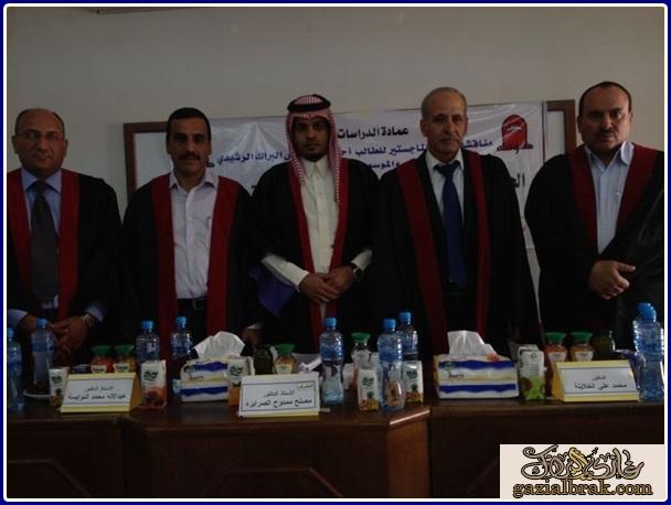 بســــم الله الرحمن الرحيم أخواني الأعزاء وزوار موقع الشاعر غازي البراك موقع الجميع السلام عليكم ورحمه الله وبركاته اما بعد..... لقد حصل الاستاذ/ احمد بن فهد بن ناهس بن براك على درجة الماجستير في القانون العام بجامعة مؤته في المملكة الاردنيه الهاشمية عنوان الرساله ((الحمايه القانونيه للاموال العامه في التشريعات الاردنيه والسعوديه)) دراسه مقارنه تحت إشراف وأعضاء لجنة المناقشه وهم كل من: اسماء المناقشين أ .د.مصلح الصرايره مشرفآ ورئيسآ أ.د.عبدالاله النوايسه عضوآ د.محمد الخلايله عضوآ أ.د.حمدي القبيلات عضوآ خارجيآ وقد تمت إجازة الرساله بعد المداولات والنقاش بتقدير ممتاز من اعضاء اللجنة علماً بأن الاستاذ : احمد بن براك يعتبر من الطلاب المتميزيـــــن والمبدعين في قسم القانون حيث حصل على افضل طالب لما له من جهود علمية في قسم القانون متمنين له حياه علمية مميزه. كمــــــــــا أهني باسمي ونيابه عن اداره موقع الجميع والده الشيـــخ/ فهد بن ناهس بن براك على حصول إبنه احمد على درجه الماجستير وعقبال الدكتوراة وحياه سعيده . واليكم الصوووور الشيخ /فهد بن ناهس بن براك http://www.sot3bs.com/do.php?imgf=so...3398077412.jpg النقيب/ ناهس فهد بن ناهس بن براك http://www.sot3bs.com/do.php?imgf=so...3425519771.jpg الاستاذ/احمد بن فهد بن ناهس بن براك http://www.sot3bs.com/do.php?imgf=so...3425519772.jpg احمد فهد http://www.sot3bs.com/do.php?imgf=so...3425519773.jpg http://www.sot3bs.com/do.php?imgf=so...3425520108.jpg الشبل / فهد بن ناهس بن فهد ناهس بن براك http://www.sot3bs.com/do.php?imgf=so...3425520109.jpg الشبل/فهد بن ندى بن فهد بن عبيدبن براك |