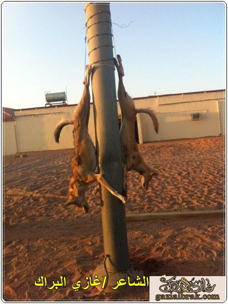 السلام عليكم ورحمة الله وبركاته اخواني اخواتي اعضاء وزوار موقع الجميع لقد هاجمت عدد من الذئاب حلال الشيخ /جهز بن فايد بن براك الرشيدي وكان لها بالمرصاد ثلاثه . من ابناء القبيله في قرية البحره جنوب حائل 150 كيلو فهد معوض سالم البراك وفايد جهز البراك وعادل متعب البراك والذي قام بصيده / فهد معوض البراك كانوا قد وضوع جهاز صيد الكراوين وهم جالسين بالقرب من الحلال وسمعو صوت الكلب وانطلقو الى الحلال وقامو بملاحقة 4 ذياب وتم صيدهم واليكم الصور |