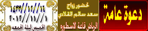 رد: دعوه عامه لحضور زواج سعد سالم القلادي بالرياض 16//12//1433