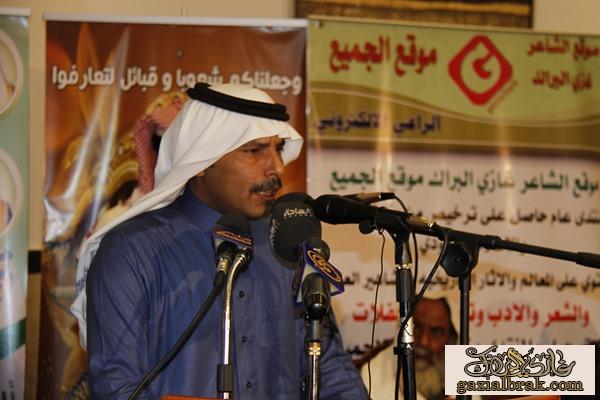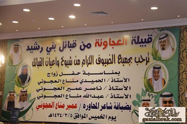 لأخواني المعرسين عبدالله مناع وناصر عمير والحميدي مناع ونقول لهم كما قال الرسول صلى الله عليه وسلم اللهم بارك لهما وبارك عليهما واجمع بينهم بخير ونتمنى لهم حياة زوجيه سعيده وبيض الله وجه الشاعر القدير عمير بن مناع بن عجوين على هذا الحفل المشرف وحسن الضيافه والاستقبال الغير مستغرب منهم واتقدم بخالص الشكر لموقع الجميع موقع الشاعر غازي البراك على هذه التغطية الرائعة والشكر موصول لمدير الموقع العام وإلى الأعلامي عوض البراك كما اشكر مؤسسة الميكرفون الحساس على التغطية الصوتية والاخراج والمونتاج الرائع تمنياتي للجميع التوفيق |