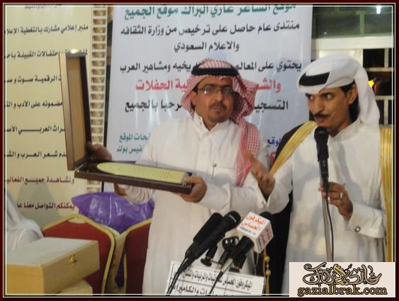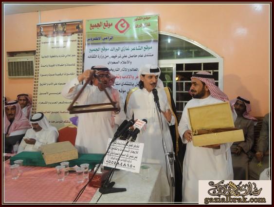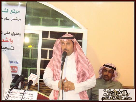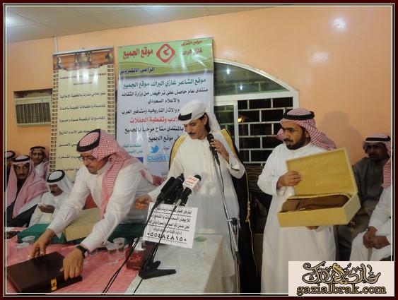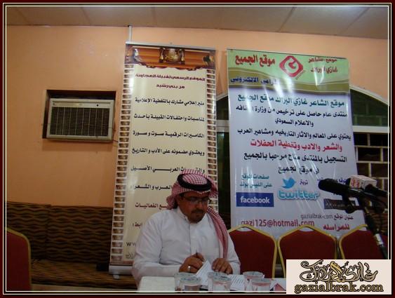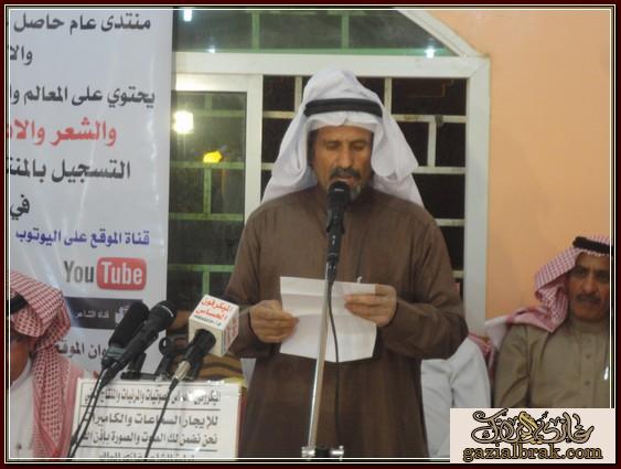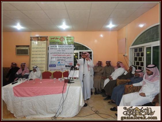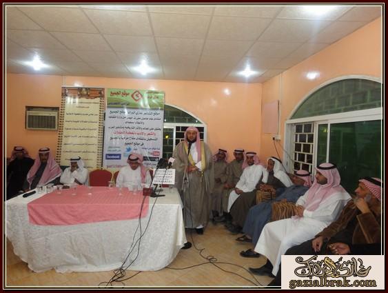 بسم الله الرحمن الرحيم اعزائي إدارة واعضاء هذا الصرح الشامخ موقع ومنتدى الشاعر غازي البراك موقع الجميع أسعد الله جميع اوقاتكم بكل خير وسرور انقل لكم هذه التغطية في يوم الخميس ليلة الجمعة الموافق 19-18/4/1434هـ http://im35.gulfup.com/3lKBb.jpg بستراحة المقصورة للمناسبات بمحافظة المجمعة حيث اقام الشيخ : محمد بن عبيد بن عجوين أحتفالاً بمناسبة زيارة الشيخ : عبدالمحسن البدراني الحربي وأبنه الشاعر : محمد بن عبدالمحسن بدعوة موجه لهم من الشيخ محمد واستجابة لدعوتهم اعد حفلأ بهذه المناسبة حيث كانت ليلة من ليالي الود ولتواصل والمحبه جمعت على أثرها حضور من البعيد والقريب استجاب لها من دعي بالحضور بتشريفهم المبهج من الحضور من المنطقة ومن مناطق بعيده حيث تخللت فقرات برنامج هذا الاحتفال الخطابي والمعد لهذه المناسبة بدأ ت فقراته مع معد ومقدم برنامج الحفل http://im35.gulfup.com/VSVfV.jpg الشاعر : مبروك بن عبيد على النحو التالي : 1- بداية بكلمة ترحيب بالضيوف والحضور نيابة عن صاحب الحفل قدمها الشاعر : مبروك بن عبيد حيث قال منها موضحاً ماتخلف مثل هذه الزيارات والتي تعد من الخطى التي تعمق اواصر المحبه وتقرب روابط الاخوه بيننا نحن أبناء هذا الوطن الذي أعزه الله وجعله قبلة للمسلمين منوهاً ذلك بفضل الله ثم بفضلالنظرة الثاقبه من ولاة امرنا وحكامنا بهذا الوطن المعطاه أيدهم الله وجعلهم نصرة للإسلام والمسلمين وكما كرر الترحيب بمن حضر من اهل المنطقة ومن خارج المنطقة للمشاركة بهذه المناسبةوعلى رأسهم 1- الشيخ : منصور بن قنور الرشيدي رئيس مركز عين أبن قنور ومن اتي معه 2- والشيخ : سعدون بن عابس القعبوبي الرشيدي ومن اتى معه 3- والشيخ : غازي بن زويد الحنيني الحربي رئيس مركز مفرق بن زويد ومن اتى معه 4- رجل الاعمال الشيخ : ملفي العلوي الحربي ومن اتى معه وكذلك الشعراء الذين اتو من بعيد وهم : 1- شاعر المحاورة المعروف الشاعر :عبدالله الأشرم الرشيدي ومن اتى معه 2- شاعر المحاورة والاعلامي المعروف : عبدالله بن عيفان السلمي ومن اتى معه 3- الشاعر : سعود الدوسري ومن اتى معه 4- الشاعر الشيخ :خلف بن مريخان الحربي 5- الشاعر : سالم بن عتقاء بن زويد الحنيني الحربي ومن اتى معه ومرحبين وشاكرين لكل من حضر 2- بعد ذلك كلمة تذكيرية واحتماعية http://im35.gulfup.com/1wlY0.jpg للشيخ :منصور بن قنور الرشيدي رئيس مركز عين أبن قنور ومن اتي معه 3- كان للشعر حضور قوي بهذه الليلة لشعراء يتميزون بنصوص شعرية تحمل جمال التصوير وروعة الفكرة.. ولهم بصمة في الساحة الشعريه لنبدا مع اول المشاركات المعده بهذه المناسبة كانت البداية بقصيدة ترحيبية لمقدم برنامج الحفل http://im35.gulfup.com/hcg4M.jpg الشاعر : مبروك بن عبيد 4- كذلك قصيدة لشاعرالمخضرم http://im34.gulfup.com/1kBmD.jpg الشاعر : سعد بن نور بن عجوين 5- كذلك قصيدة للشاعر الشاب المتألق بشعره الذي تتلمذ بمدرسة والده الشعريه لجزلة الشعر http://im34.gulfup.com/R9qT1.jpg الشاعر : وليد بن عويمر الرخيمي المطيري 6- كذلك قصيدة للشاعرالكبير والمعروف http://im34.gulfup.com/m4Oim.jpg الشاعر : فلاح بن مطر الهفتاء المطيري 7- كذلك مشاركة لشاعر الجيلين شارع المحاورة والنظم http://im34.gulfup.com/lmRm2.jpg الشاعر الكبير :فيحان بن صالح القعياني المطيري 8-كذلك قصيدة للشاعر المعروف http://im31.gulfup.com/L61Iz.jpg الشاعر : غازي البراك صوت عبس وصاحب موقع الجميع 9- كذلك قصيدة للشاعر المتألق بجزالة شعره وقوة حضوره http://im34.gulfup.com/MHfxK.jpg الشاعر : دحيم بن فرحان بن شعيب المشعلي 10-كذلك قصيدة مشاركة الاخ العزيز والشاعر القدير http://im34.gulfup.com/tbytR.jpg الشاعر : قبلان بن فرحان الرمالي الشمري 11- مشاركة بكلمة للشاعر الكبير شاعرالمحاورة المعروف http://im34.gulfup.com/akSJj.jpg الشاعر الكبير: عبدالله الاشرم 12- كذلك مشاركة بكلمة للشاعر الكبير http://im34.gulfup.com/YmcTx.jpg شاعرالمحاورة والاعلامي : عبدالله بن عيفان السلمي http://www.tanahcity.com/sama/image/bolder/b06.gif كماشارك شعراء أخرون بمشاركات بقصائد سابقه لهم متنوعة بالوطن والنصح والحكمة وهم كلاً من : http://im34.gulfup.com/0SnWW.jpg الشاعر : غلاب بن ود الثبيتي العتيبي http://im34.gulfup.